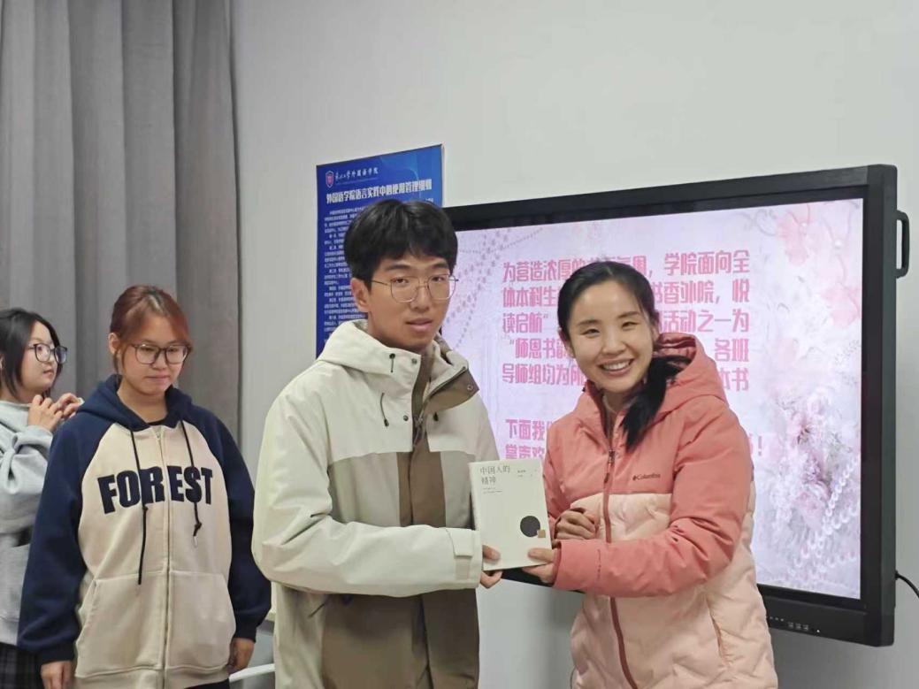 赠书仪式在同学们中间引发了热烈而深刻的反响。大家普遍认为,班导师们精心挑选的书籍,不仅是一次知识的馈赠,更是一把开启智慧、照亮前路的钥匙,让同学们在阅读中深刻体会到专业的魅力、成长的责任与人生的价值。俄语2301班全体同学在收到《俄罗斯文学人生课》后表示,聆听老师将厚重的俄罗斯文学与鲜活的人生智慧相联结,仿佛推开一扇通往灵魂深处的窗。让同学们领悟到专业精进与生命成长本是一体。此次仪式,不仅是知识的传递,更是一次宝贵的精神启迪,感念之情,铭记于心。日语2401班弓利涛同学在班导师所赠《你想活出怎样的人生》的阅读体验中领悟到"无论时代如何困难残酷,都要活得像一个真正的人"这不仅是书的信念,更是导师寄予同学们的期许。英语2501班褚伊励娜同学从《牧羊少年的奇幻之旅》体会到追寻梦想是人生的核心意义,当我们踏上追梦之路,整个宇宙都会助力。它不仅仅是一个故事,更是一个充满象征与寓意的寓言。德语2101李佳旭同学也在班导师所赠《悉达多》的书籍中如同开启了一场关于“成为自己”的精神远征一般,领悟到让自我实现的路径在坚守与觉知中将会愈发清晰,最终在语言与精神的双重成长中,活出独属于自己的饱满人生。